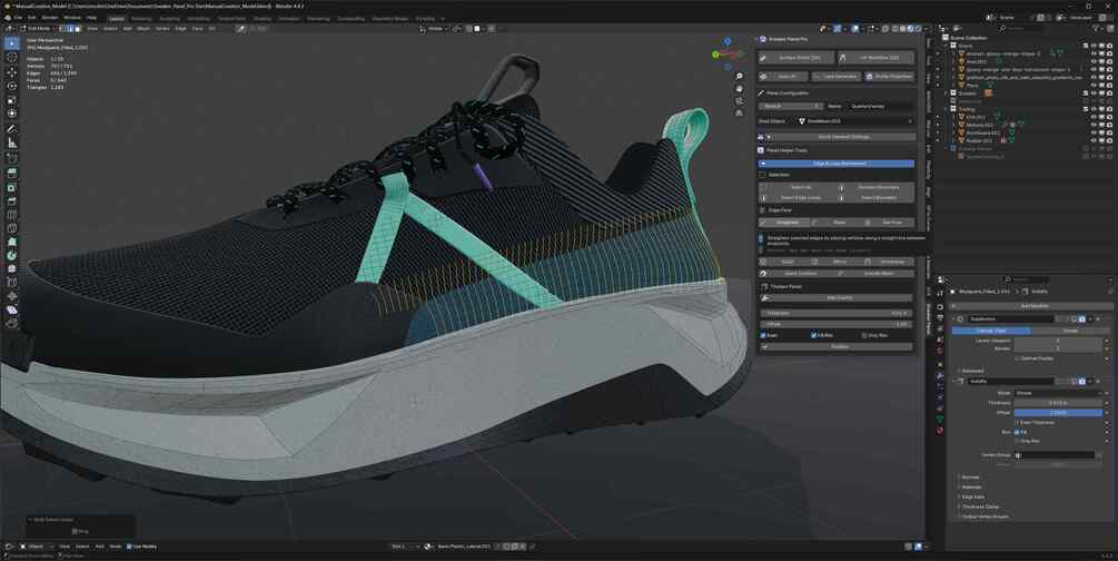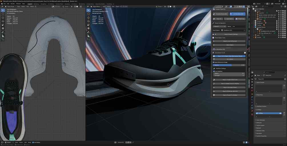 Sneaker Panel Pro brings 20+ years of professional footwear design experience into Blender — fusing traditional pattern-making workflows with modern digital precision. Built by a veteran footwear designer, it transforms Blender into a powerful patterning lab, streamlining everything from rough 2D sketches to production-ready 3D models.